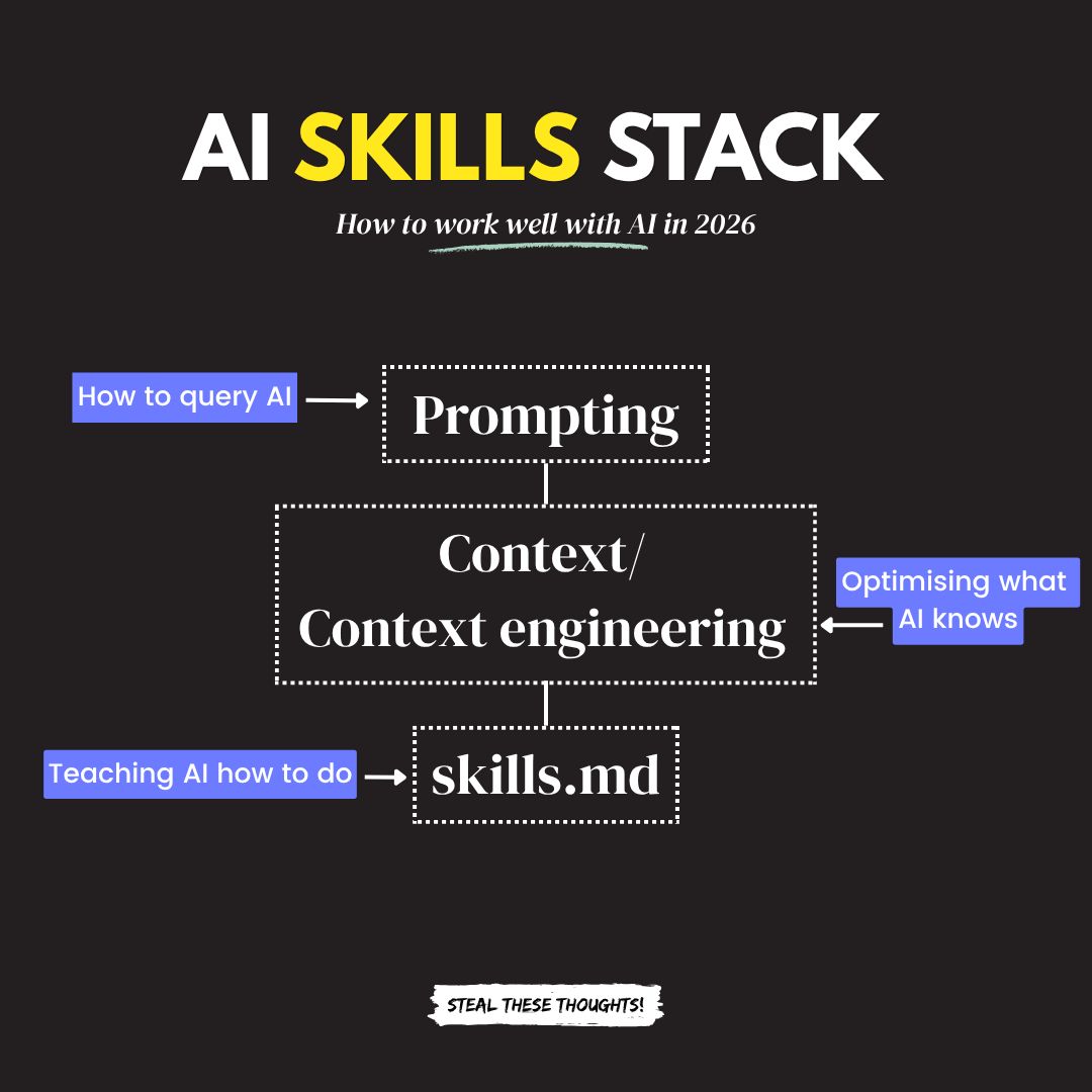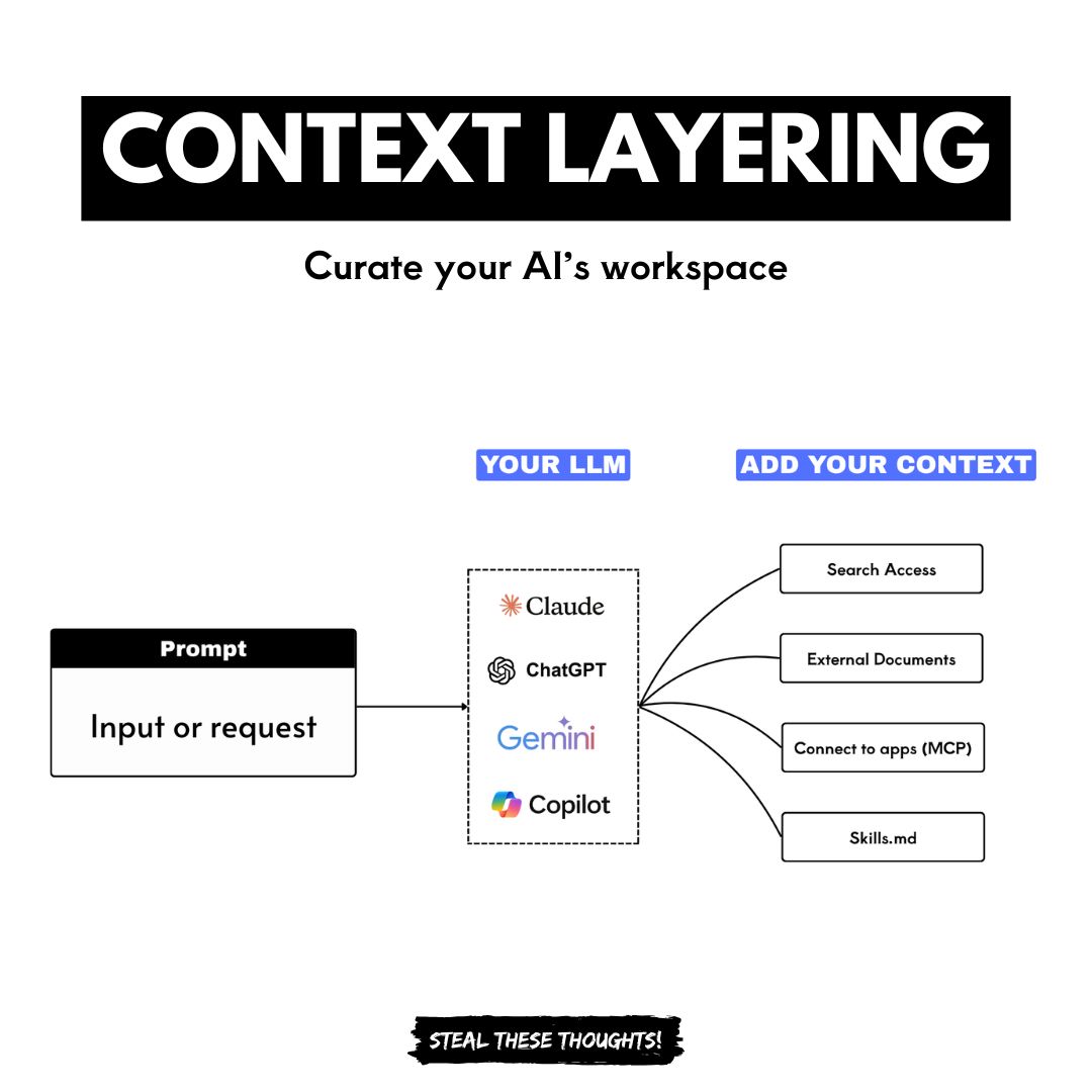 We could say that prompting + context layering + skills/instructions = the 3 layers of a strong AI response.